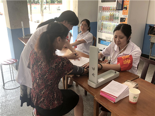 醫(yī)護人員認真接待每一位前來就診的老師,免費發(fā)放健康教育處方、讀本、小冊子,提供測血壓、測血糖、測血型及用藥指導服務,進行詳細講解、宣傳,并耐心細致給予飲食建議,讓老師們了解疾病的危害及防治,享受到“家門口”優(yōu)質的醫(yī)療服務。