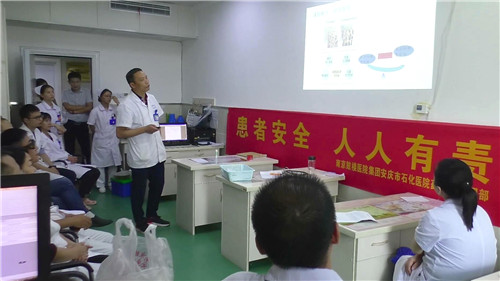 9月10日至20日活動期間,藥劑科主任劉會前帶領本科室業(yè)務骨干,與臨床科室、護理部等合作,開展安全用藥等專題講座,利用慢病糖尿病宣講日與患者面對面進行溝通交流,提供合理用藥咨詢服務。通過教師節(jié)進學校、門診宣傳咨詢、與內(nèi)分泌科共同培訓、周末進社區(qū)、分發(fā)宣傳材料等一系列具體活動,普及安全用藥知識。藥劑科主任劉會前、內(nèi)分泌科主任王安的授課實用且精彩;普外科操海寶副主任、放射介入科楊龍林副主任也加入月山月形社區(qū)衛(wèi)生服務站科普宣傳,擴大了社會影響。