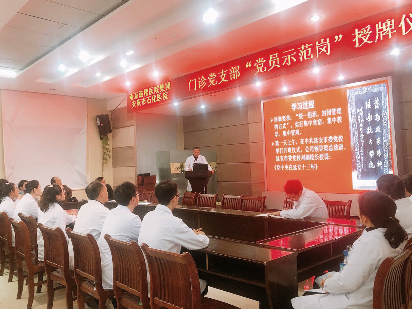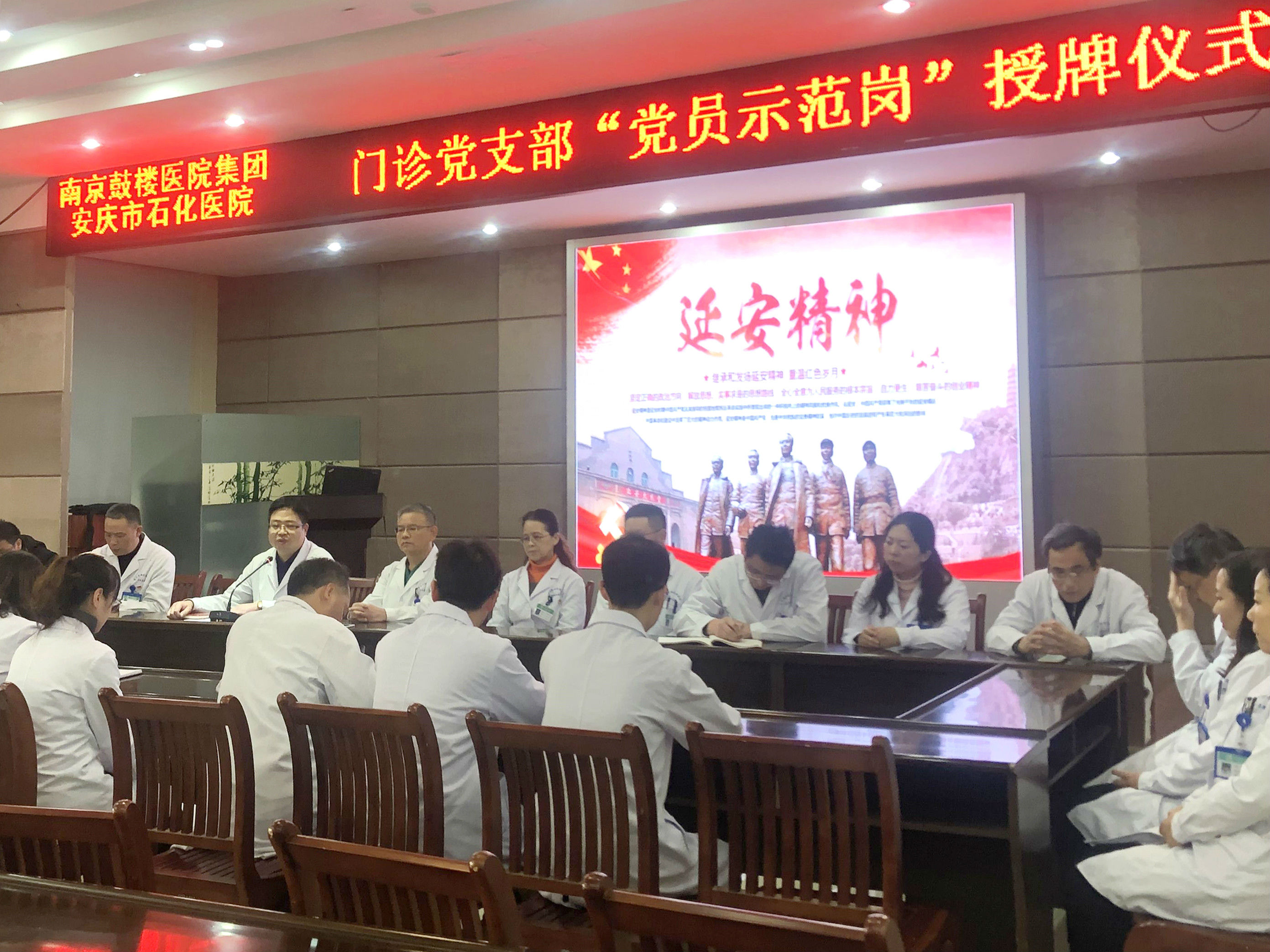 根據(jù)公司黨委要求及院黨委的安排,門診黨支部于今年申報設(shè)立“黨支部書記工作室”。為進一步加強支部建設(shè)、更好地發(fā)揮黨員作用,門診黨支部結(jié)合門診科室對外服務(wù)窗口的特點,對黨員比較集中的窗口單位設(shè)置“黨員示范崗”,并由汪書記現(xiàn)場給藥劑、門診黨小組授牌。