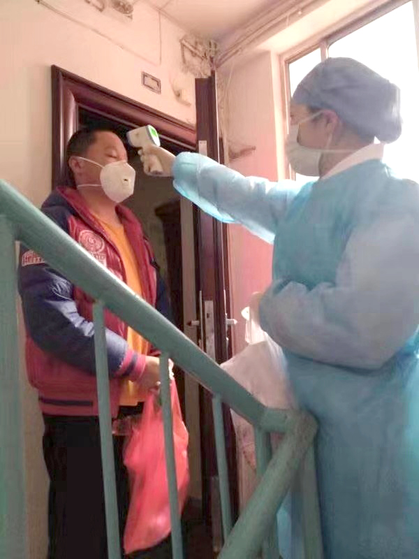 “您好,今天感覺怎么樣???”在做好院內(nèi)疫情防控的同時,醫(yī)院還承擔了社區(qū)排查工作,從源頭上阻斷傳播 。石化醫(yī)院12名醫(yī)療點人員,定時上門對武漢來宜人群測量體溫,同時積極宣傳科學(xué)防控知識,給居家隔離的人們送去關(guān)愛和溫暖。