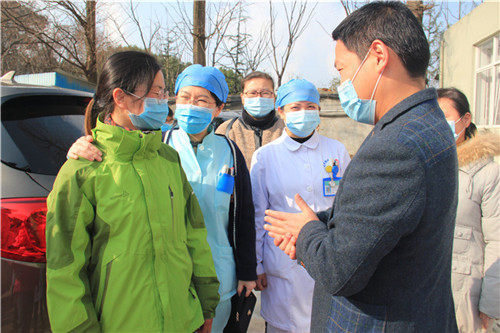 得知消息的醫(yī)院同事、家屬紛紛從家里趕來,為了防止聚集,他們自覺地散在體檢大廳和外廣場(chǎng),為隊(duì)員打氣、鼓勁,送戰(zhàn)友出征。在即將奔赴湖北抗疫第一線的離別時(shí)刻,我們的三位白衣勇士與大家揮手告別。每一句叮囑都記在心上,每一句鼓勵(lì)都化作動(dòng)力。