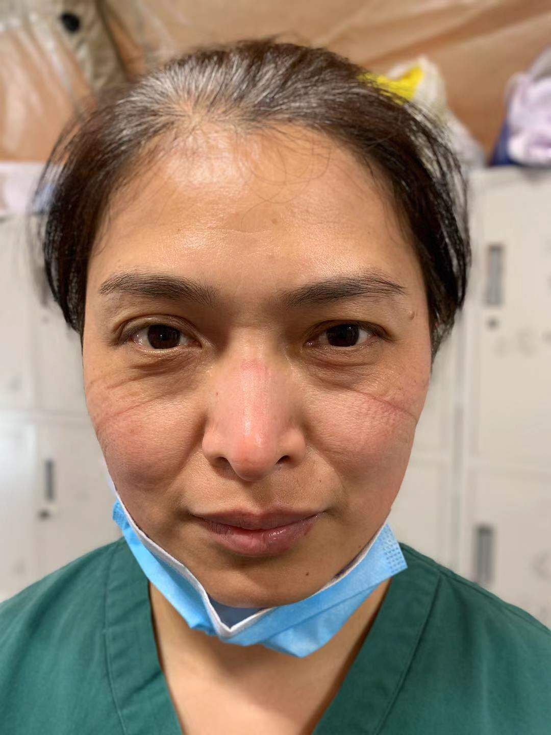 我們絕不會因為任何事情而讓信念減弱,我們?nèi)匀幻刻煊淇斓纳习?,不會因為臉上的壓痕和破皮而懈怠,請組織放心、請家人放心,我們很好,請勿擔(dān)心,中國加油,武漢加油,我們是最棒的。