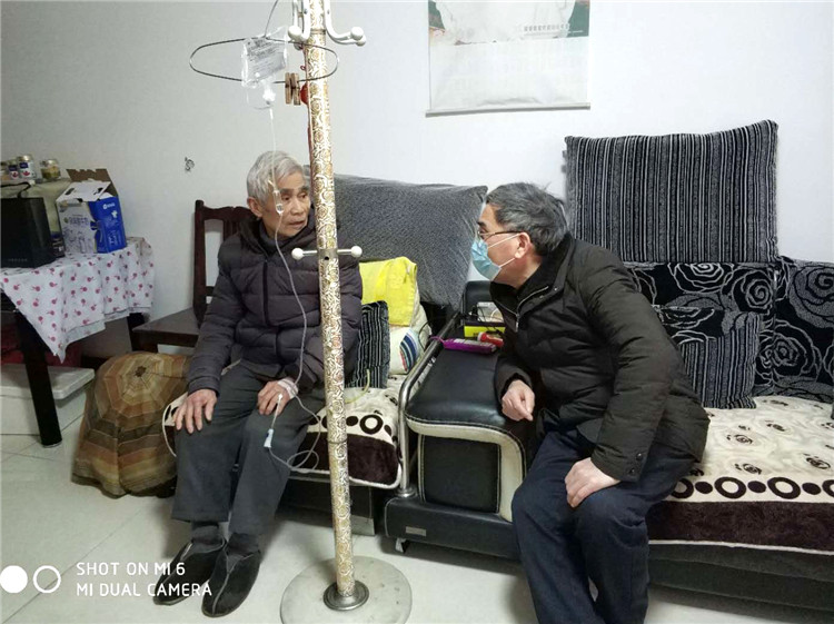 3月4日,周勁勇副主任的父親生病需要輸液,但疫情期間診所都暫停營業(yè)了。得知消息后,臨二黨支部劉曙光、汪念東、周傳毅、葛翠紅積極行動起來,第一時間趕到周主任家中,為其父親輸液治療,并為其母親做術(shù)后檢查,同時送去慰問品。