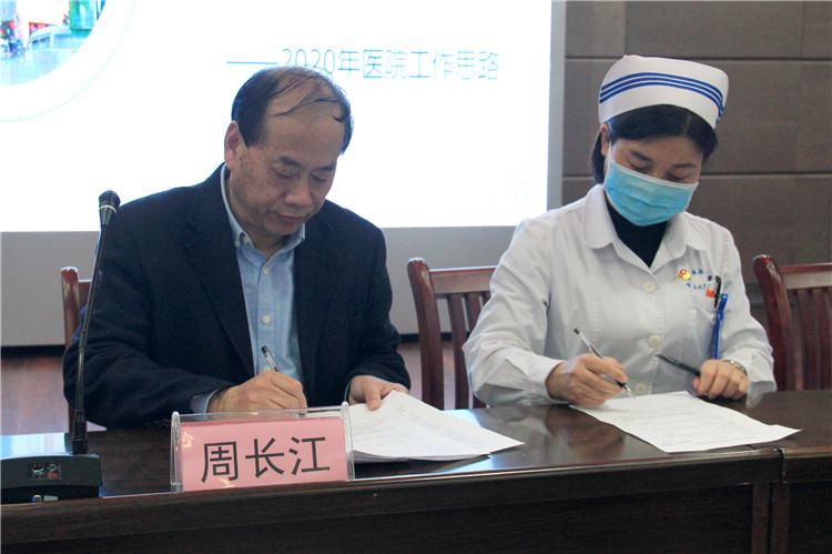 醫(yī)院科主任(科長(zhǎng))代表與周長(zhǎng)江院長(zhǎng)簽署了2020年科主任綜合目標(biāo)考核責(zé)任書,與陳勝書記簽署了黨風(fēng)廉政及行風(fēng)建設(shè)責(zé)任書和安全管理責(zé)任書。