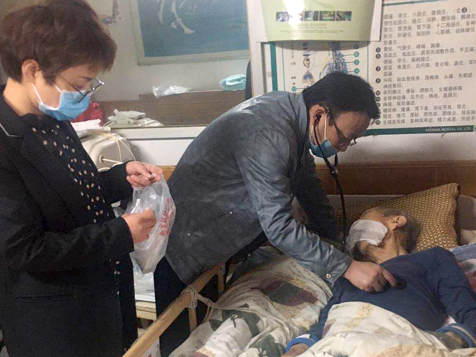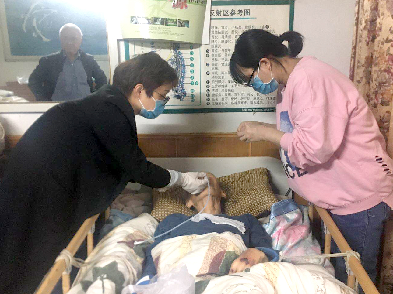 下班后,徐主任、彭護(hù)士長(zhǎng)、汪護(hù)士一起來(lái)到病人家中,為汪爺爺聽診、量血壓、更換胃管。隨后,他們還為病人進(jìn)行了相關(guān)體檢,并耐心叮囑家屬鼻飼的注意事項(xiàng)及壓瘡的預(yù)防技巧。臨走前,彭護(hù)士長(zhǎng)還不忘科普疫情防控的小知識(shí)。家屬對(duì)心血管內(nèi)科的延伸服務(wù)也是贊不絕口,“疫情期間,還能得到你們?nèi)绱藢I(yè)周到的照顧,很溫暖,也很感動(dòng)。你們是名副其實(shí)的白衣天使!”
