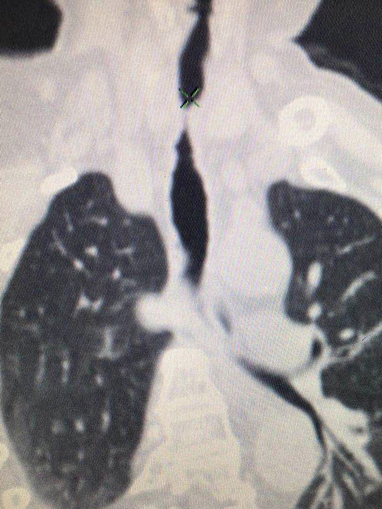 多方打聽下,他們慕名找到我院耳鼻咽喉頭頸外科專家汪文曉?;颊邭夤茏瞠M窄處僅6mm,而正常女性氣管直徑一般為12-15mm,隨時有窒息的可能??剖覉F(tuán)隊組織多學(xué)科會診,商討最優(yōu)治療方案。考慮到患者身體狀況不能接受全麻,最終慎重決定由放射科介入團(tuán)隊為其施行氣管支架植入術(shù)。