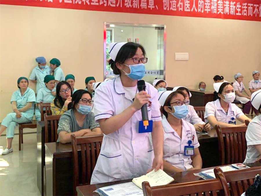 8月3日下午,護(hù)理部在多功能廳組織了一場全院護(hù)理查房。各科護(hù)士長及護(hù)士踴躍參加,會(huì)場座無虛席。