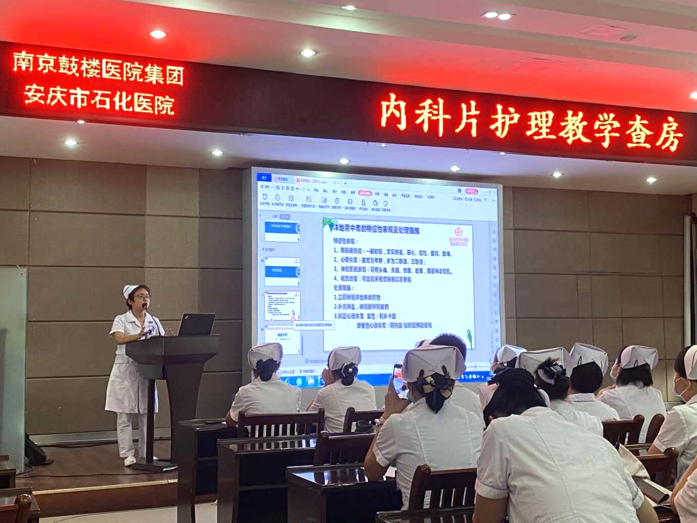 為了規(guī)范護理教學(xué)查房,提高臨床教學(xué)質(zhì)量,培養(yǎng)學(xué)生主動學(xué)習(xí)意識,8月12日下午,我院在多功能廳舉行全院首次公開護理教學(xué)查房。此次查房以“慢性心力衰竭”為主題,由大內(nèi)科護士長胡美榮組織,心血管內(nèi)科主辦,護理部、內(nèi)科片區(qū)護士長、帶教老師、N1和N2護士及實習(xí)生參加。