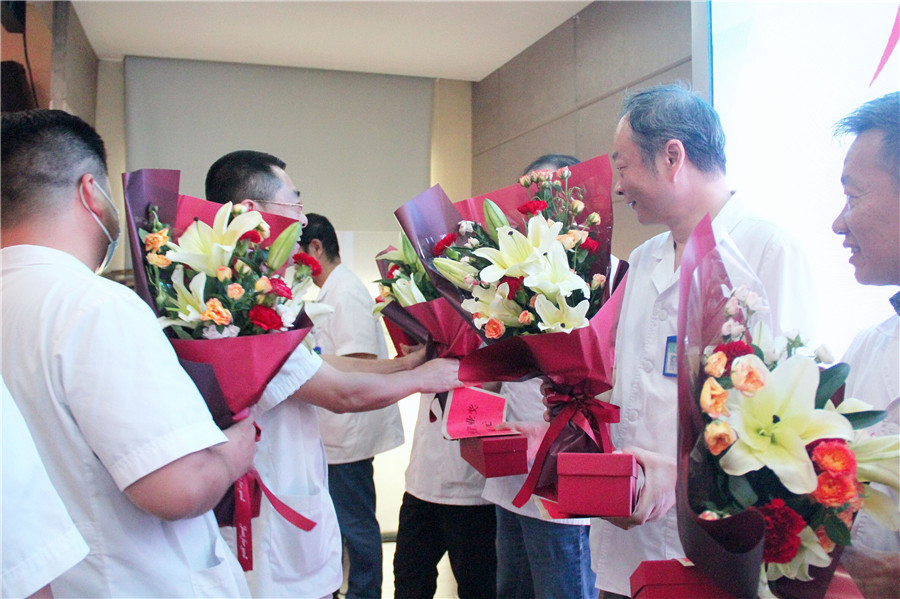 會(huì)上,黨委書記陳勝宣讀了《關(guān)于授予方向東等同志“忠誠守業(yè)獎(jiǎng)”的決定》,對醫(yī)院35年工齡以上的12位醫(yī)務(wù)工作者予以表彰,由院領(lǐng)導(dǎo)為他們頒發(fā)獎(jiǎng)杯,去年醫(yī)師節(jié)評(píng)選出的“十優(yōu)醫(yī)生”為獲獎(jiǎng)前輩們送上鮮花。
