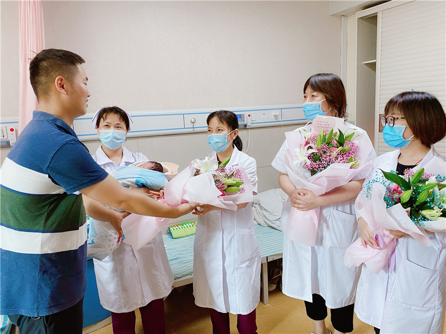 “花束是我們的心意,請(qǐng)一定要收下,真的太感謝你們了!”9月3日一大早,婦產(chǎn)科7床的病房里花香四溢,產(chǎn)婦黃女士的丈夫精心準(zhǔn)備了4束鮮花,代表全家送給了前來查房的科室醫(yī)護(hù)人員。