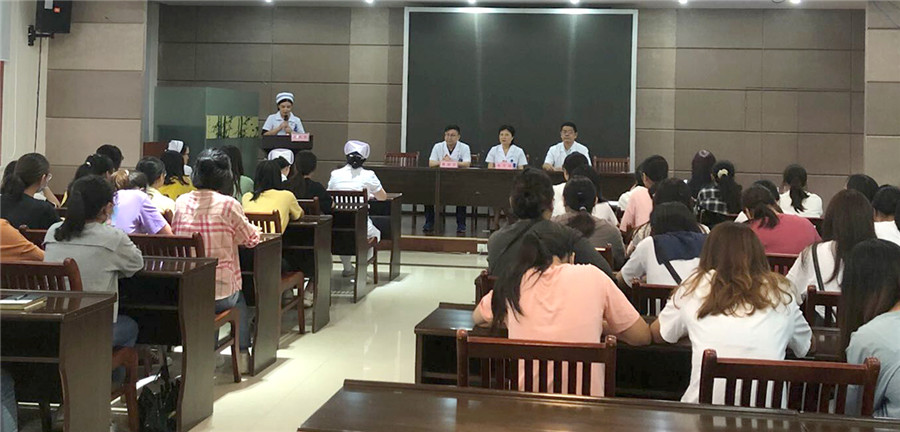 韋寧華院長代表醫(yī)院歡迎2019級新生加入我們的大家庭,勉勵同學(xué)們要明確目標(biāo),珍惜青春,努力學(xué)習(xí)護理理論和操作技能的同時,加強溝通能力、人文關(guān)懷和自我管理的培養(yǎng),力爭做一名有溫度的醫(yī)者。韋院長的講話引起了在場同學(xué)們的共鳴,獲得陣陣掌聲。