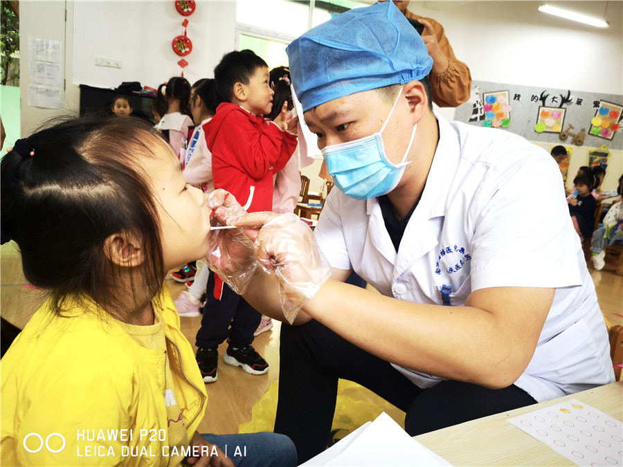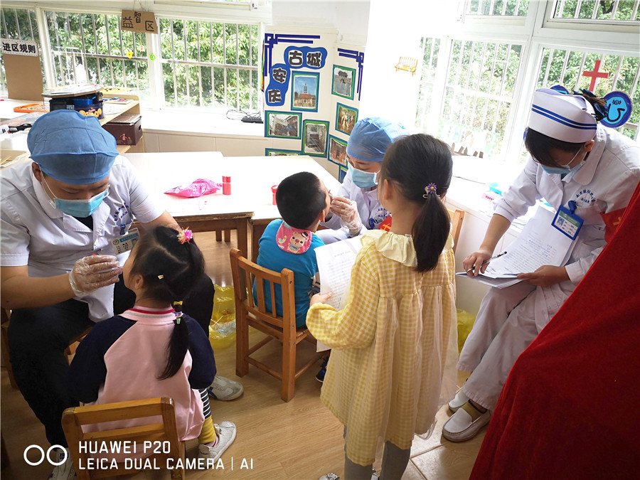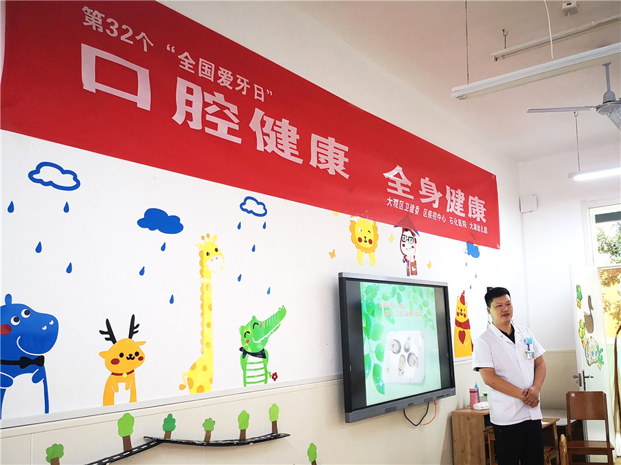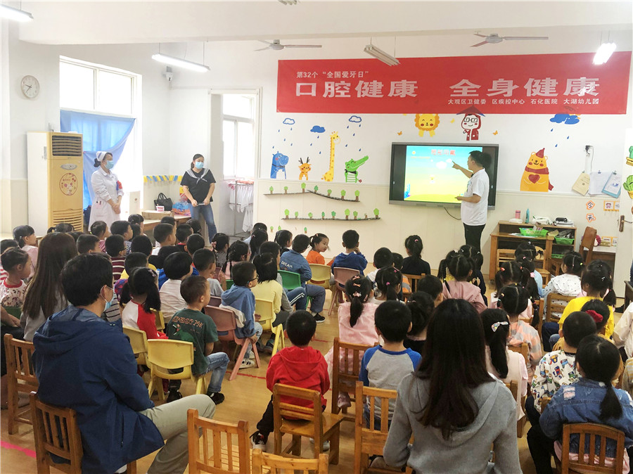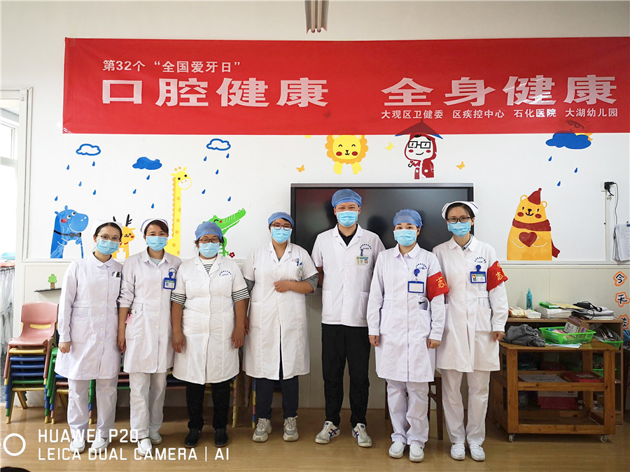 今年9月20日是第32個(gè)全國愛牙日,為普及“口腔健康,全身健康”的防治理念,9月18日上午,我院口腔科攜天使愛心服務(wù)隊(duì),特邀大觀區(qū)疾控中心,深入大湖幼兒園為小朋友們科普牙齒保健知識(shí),并開展免費(fèi)口腔檢查及涂氟活動(dòng)。