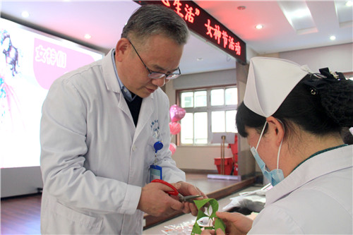 院長韋寧華特地趕到活動現(xiàn)場問候大家。黨委副書記、工會主席汪文曉親自上陣,用“外科醫(yī)生”的“巧手”助力女職工。