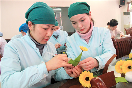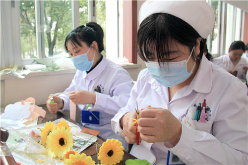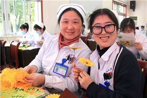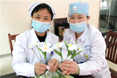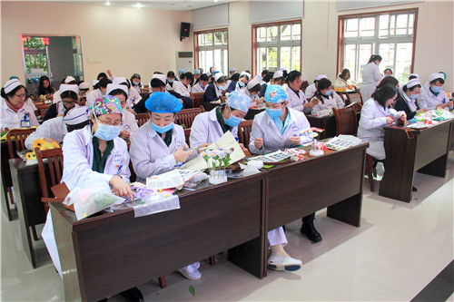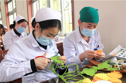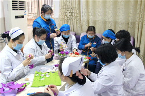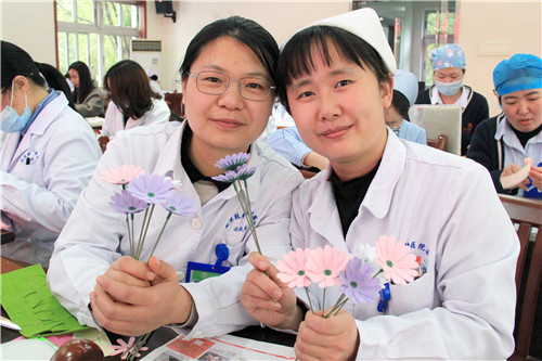 醫(yī)院近150名女職工歡聚在一起,放松心情,默契合作。愜意談笑間,創(chuàng)造出一片五彩繽紛的花海!拈花淺笑著,快樂的心花兒亦朵朵綻放!