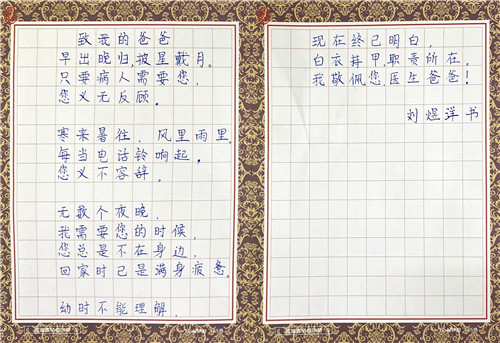 他們和“小小石醫(yī)人”一起,用手中的畫筆、毛筆、鋼筆,繪畫、書寫出自己對(duì)于幸福生活的不懈追求、對(duì)于醫(yī)院未來的美好期待。
