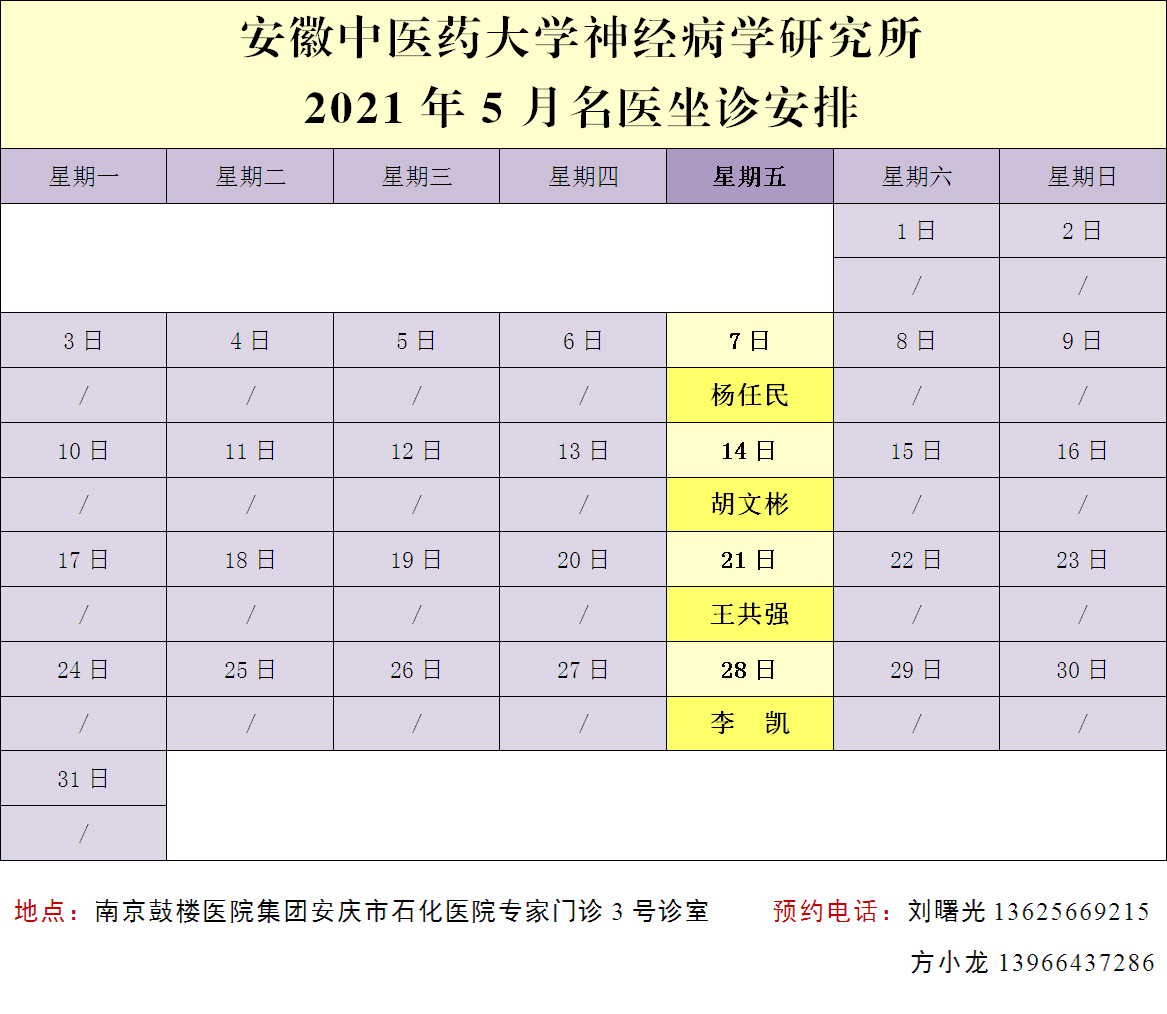 2021年5月,楊任民教授、胡文彬教授、王共強(qiáng)教授、李凱教授都將到石化醫(yī)院坐診,機(jī)會(huì)難得,不容錯(cuò)過!