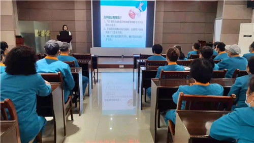 會(huì)上,全體參會(huì)人員共同觀看了手衛(wèi)生宣傳視頻。