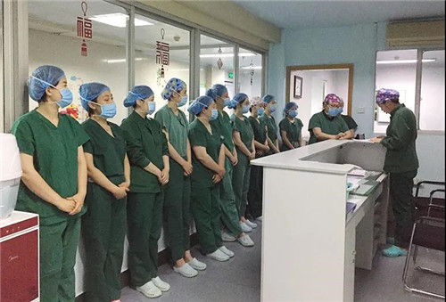 早上8:00,所有手術(shù)室護(hù)士已經(jīng)穿好洗手衣、戴好口罩帽子、換好拖鞋,“全副武裝”集結(jié)在護(hù)士站,開(kāi)始一天的工作。
