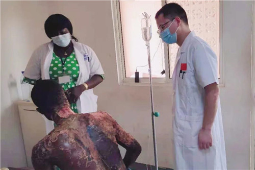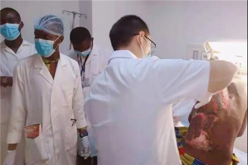 在這里,我更加感受到了祖國的強(qiáng)大,和身為一個(gè)中國人的幸福和自豪。每每看到那些被病痛折磨的患者,我都很揪心,也暗暗下決心要盡己所能地幫助他們。雖然我能做的也很有限,但我正努力和這里的同事溝通,幫助他們加強(qiáng)早期手術(shù)意識(shí),提高植皮操作技能。
