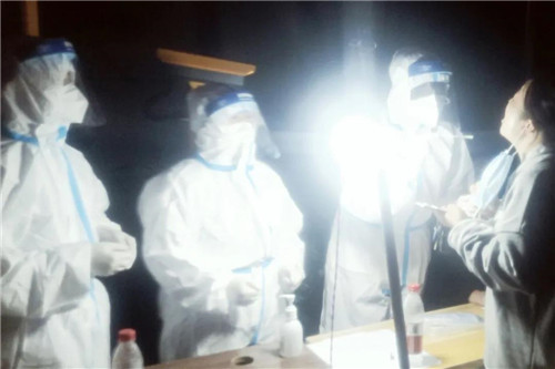 下午5點順利抵達,大家迅速安頓行裝、整理物資,稍作休整后,便第一時間按照上級安排前往各小區(qū),投入緊張的核酸采集工作。