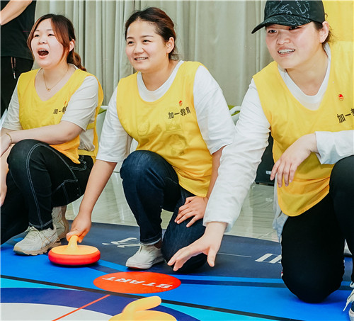 室內(nèi)冰壺活動,團員們拼盡全力,一決高下