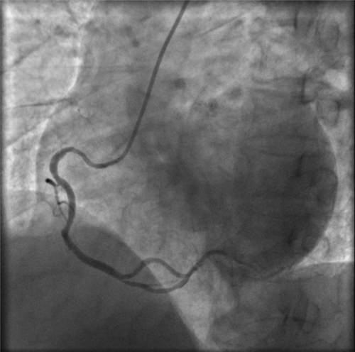 右冠近段嚴(yán)重狹窄,未見(jiàn)右向左的側(cè)枝循環(huán)