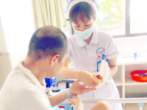接下來的幾天,這位特殊的患者成了全科的重點(diǎn)關(guān)注對象,巡視病房時(shí),大家總會不放心地過去看一看他,陪他聊聊天,問問他需要什么,想吃什么,想喝什么,用真情為他打造了一個(gè)有愛的石醫(yī)之家。護(hù)士長疏平也積極與患者所在福利院及居委會聯(lián)系,多方協(xié)調(diào),保證患者的生活質(zhì)量。