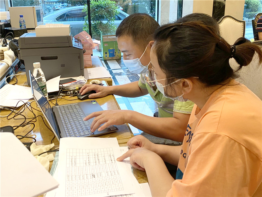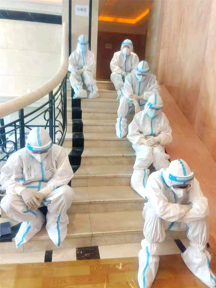 昨晚抵達(dá)南京后,石化醫(yī)院第一批12名隊(duì)員分成3組,馬不停蹄就投入了緊張的培訓(xùn)。培訓(xùn)一直持續(xù)到凌晨2點(diǎn),隨后,3組人員分別進(jìn)駐南京市鼓樓區(qū)的3家定點(diǎn)隔離酒店開(kāi)始工作。凌晨4點(diǎn),隊(duì)員們協(xié)助隔離人員辦理入住、登記信息。他們將和南京工作人員一起,負(fù)責(zé)這3個(gè)隔離點(diǎn)所有隔離人員的醫(yī)療保障和生活照料任務(wù)。