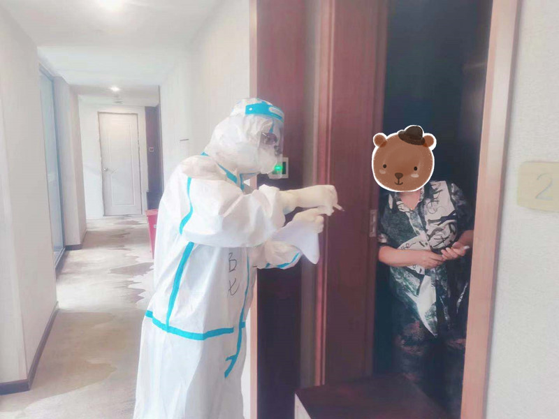 我們組的小姐姐王燕年齡雖然不大,但戰(zhàn)疫經(jīng)驗(yàn)豐富,她去年初曾支援武漢,并在前線遞交了入黨申請(qǐng),現(xiàn)在她已經(jīng)光榮地成為了一名預(yù)備黨員。她始終以優(yōu)秀黨員的標(biāo)準(zhǔn)嚴(yán)格要求自己,哪里有困難她就在哪里。一位隔離人員夜間突發(fā)急性化膿性扁桃體炎,體溫升至38.1℃,王燕第一時(shí)間匯報(bào)點(diǎn)位長(zhǎng)申請(qǐng)轉(zhuǎn)診醫(yī)治,并主動(dòng)要求陪同前往南京鼓樓醫(yī)院,直至凌晨才返回隔離點(diǎn)。在她的細(xì)心看護(hù)和密切監(jiān)測(cè)下,兩天后該隔離人員體溫恢復(fù)正常。還有一位隔離人員孕期反應(yīng)嚴(yán)重,王燕一面及時(shí)給予孕婦心理護(hù)理和健康宣教,一面為其準(zhǔn)備特殊飲食。她還堅(jiān)持每天電話回訪,讓該孕婦在隔離期間心情舒暢,安心養(yǎng)胎。