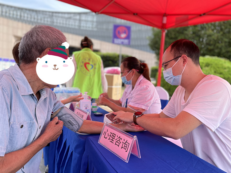 量血壓、測血糖、看診查體、健康宣教、心理咨詢、發(fā)放禮物,市民耐心排隊候診,專家熱情為大家服務(wù)。