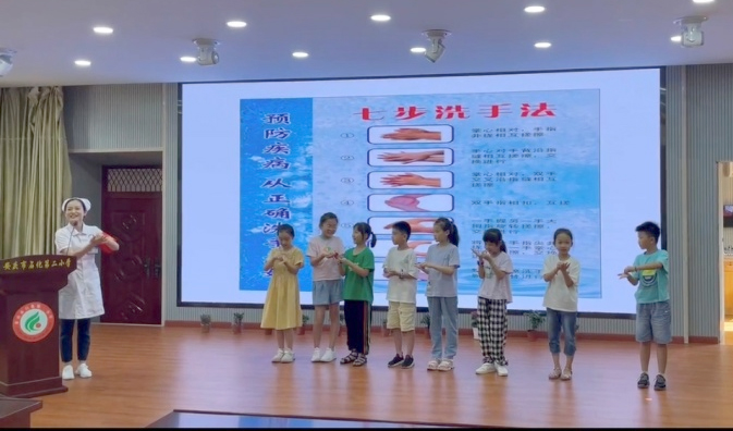 檀甲梅護(hù)士長現(xiàn)場指導(dǎo)同學(xué)們學(xué)習(xí)“七步洗手法”,并多次強(qiáng)調(diào),正確洗手是預(yù)防接觸感染、減少傳染病傳播的關(guān)鍵步驟。