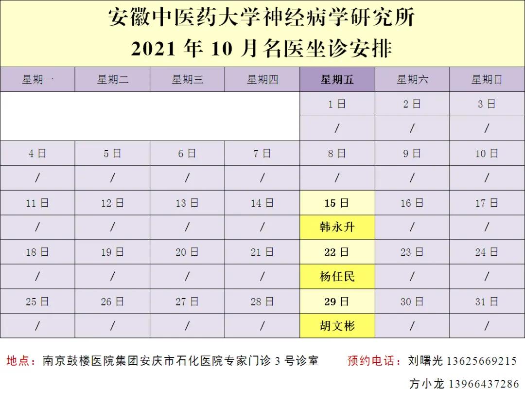 2021年10月,楊任民教授、韓永升教授、胡文彬教授都將到石化醫(yī)院坐診,機會難得,不容錯過!