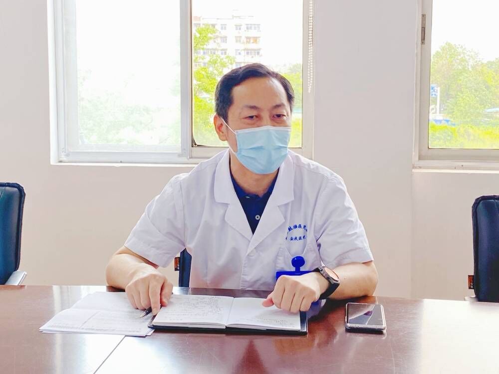 院黨委副書(shū)記、安慶市最美醫(yī)生汪文曉在臨床一黨支部學(xué)習(xí)會(huì)上作中心發(fā)言。