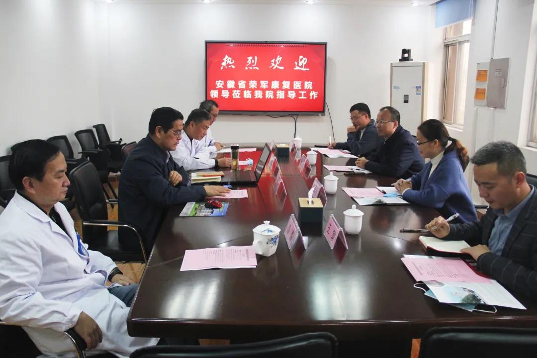 10月20日上午,安徽省榮軍康復(fù)醫(yī)院黨委委員、副院長李祥,黨委委員、紀(jì)委書記劉亞麗,人事教育科科長方海以及黨委秘書王蒙一行4人來到石化醫(yī)院調(diào)研。石化醫(yī)院副董事長花杰、院長助理趙曉陽、辦公室主任蘇磊、醫(yī)保管理運(yùn)營中心副主任尹育計熱烈歡迎遠(yuǎn)道而來的同仁,并與對方展開座談交流。