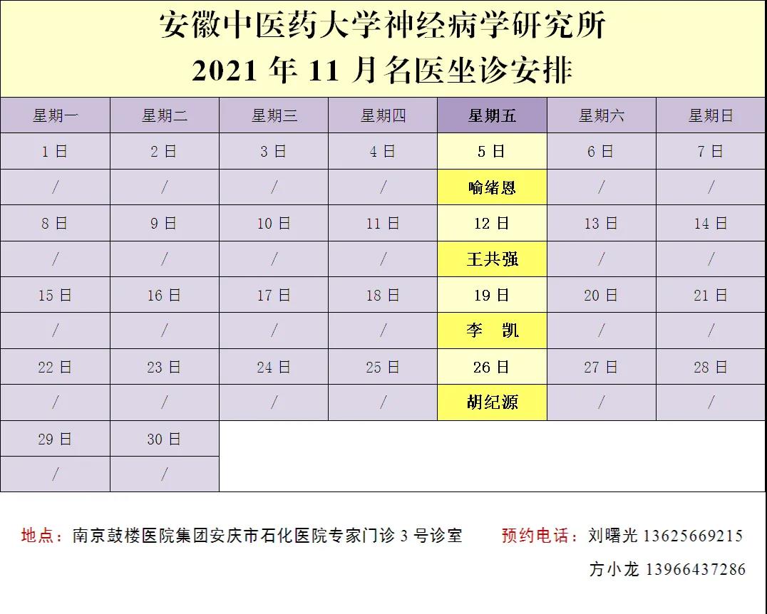 2021年11月,胡紀(jì)源教授、王共強(qiáng)教授、李凱教授和喻緒恩教授都將到石化醫(yī)院坐診,機(jī)會難得,不容錯過!