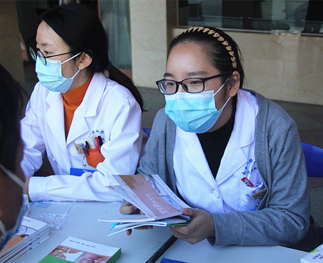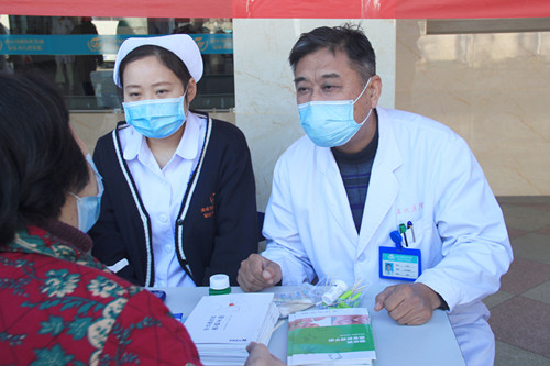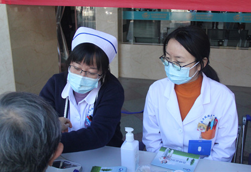 內(nèi)分泌科主任王安、護理部主任劉風英、主治醫(yī)生胡月、醫(yī)師熊英、護士長童玲、糖尿病??谱o士徐珍珍、倪敏為前來咨詢的群眾答疑解惑,免費測量血糖、血壓,并主動宣教糖尿病防治相關(guān)知識。