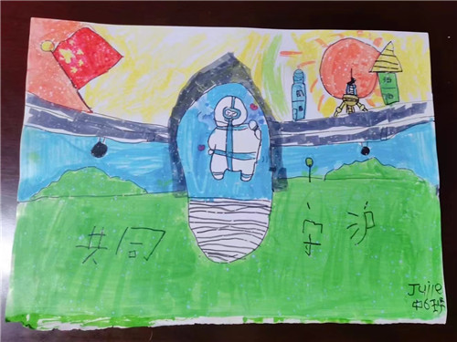 “阿姨,這是我畫的畫,送給你們!謝謝你們和我們共同守‘滬’健康,我們要一起加油哦!”小朋友用稚嫩的畫筆畫出了心中的大白,用真心的感謝繪出了眼里的天使。