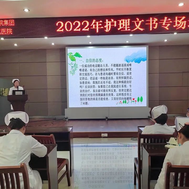 近日,護(hù)理部對全院護(hù)理人員進(jìn)行護(hù)理文書規(guī)范書寫培訓(xùn)。培訓(xùn)會議由護(hù)理部主任劉風(fēng)英主持,心血管內(nèi)科護(hù)士長彭鳳艷、骨科護(hù)士長章麗云、泌尿外科護(hù)士長方誠誠主講。