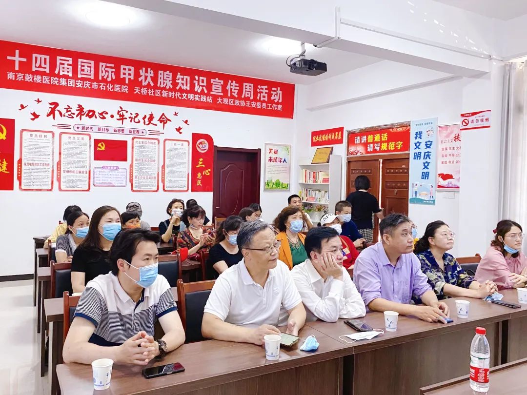 作為江淮名醫(yī)、安慶市政協(xié)委員、大觀區(qū)政協(xié)常委,王安主任于2017年開設“王安政協(xié)委員健康咨詢工作室”,定期帶領團隊深入基層開展義務健康講座及咨詢活動。此次在“國際甲狀腺知識宣傳周”走進社區(qū)宣講,也得到了大觀區(qū)政協(xié)副主席郝艷艷的高度肯定。
