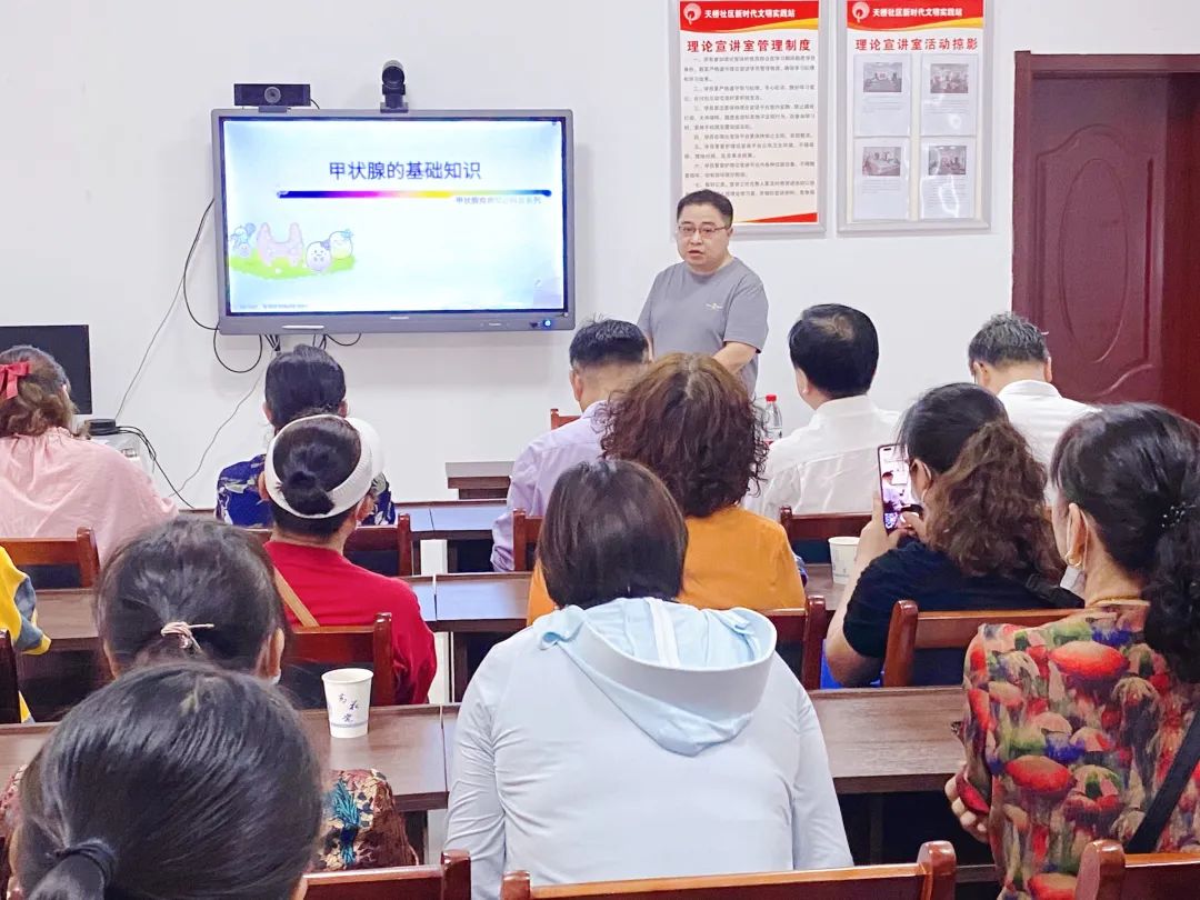內分泌科副主任醫(yī)師李凡現場開展甲狀腺疾病防治宣講,為社區(qū)居民詳細講解甲狀腺疾病的癥狀、病因、防治以及日常注意事項。