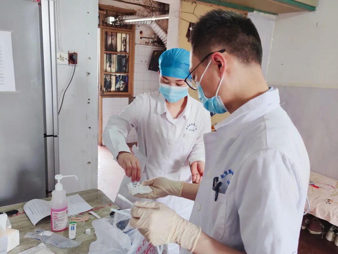 在備齊所需物品后,醫(yī)護(hù)人員來到李阿姨家中。進(jìn)行相關(guān)體征檢查并評估患者身體狀況后,準(zhǔn)備用物。醫(yī)生吳亞為和護(hù)士潘星星配合默契,操作嫻熟,不一會(huì)兒就為李阿姨更換好了新的胃管。