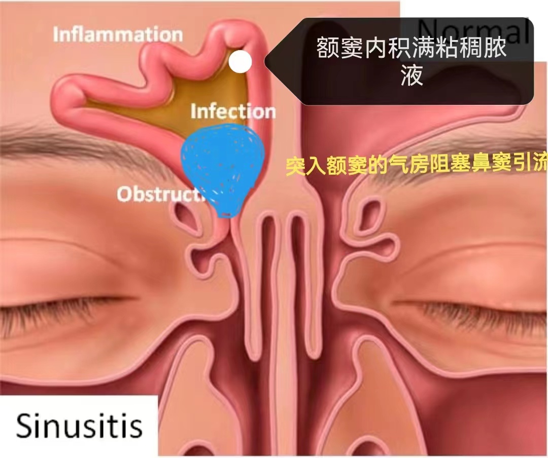 汪文曉書(shū)記表示,額竇位于額部,是鼻竇中位置最高的部位,鼻竇口開(kāi)口在額竇底下。額竇炎引起的疼痛通常表現(xiàn)為整體頭痛,并向前額部放射。夜間睡了一晚,膿液越積越多,膿液流出后流空效應(yīng)造成頭疼,晨起后頭痛會(huì)逐漸加重,上午疼痛最為明顯。
