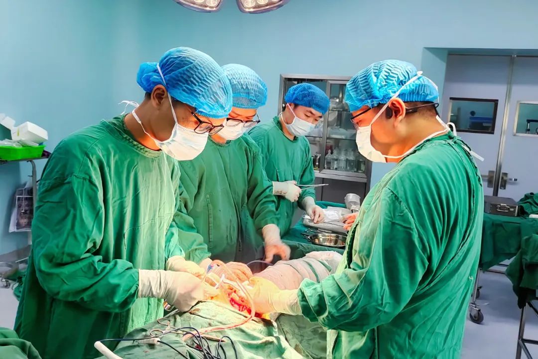 在清創(chuàng)過(guò)程中,患者左大腿中段大量出血,徐自勝醫(yī)生考慮是股骨干骨折斷端損傷股動(dòng)脈,導(dǎo)致股動(dòng)脈破裂出血,這也是患者失血性休克的主要原因,便立即予以左大腿根部充氣式止血帶止血。情況緊急,患者病情危重,骨科、ICU、麻醉科緊急會(huì)診后,晚上10點(diǎn)半,由徐自勝醫(yī)生主刀,為劉先生行左股骨開(kāi)放性骨折探查+股動(dòng)脈吻合+支架外固定術(shù)。術(shù)中確認(rèn)股動(dòng)脈在骨折斷端位置破裂,止血帶一旦松開(kāi),血液便噴涌而出。股動(dòng)脈開(kāi)放性損傷極其危險(xiǎn),可因大出血致失血性休克乃至死亡,徐醫(yī)生冷靜處理,予以動(dòng)脈夾夾閉兩側(cè)動(dòng)脈,用血管吻合線吻合股動(dòng)脈,成功完成手術(shù),隨后轉(zhuǎn)入ICU繼續(xù)監(jiān)護(hù)治療。