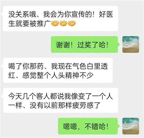 吃藥一周后,患者病情明顯好轉(zhuǎn),每天能睡六七個(gè)小時(shí),兩周后患者失眠癥狀消失。在微信中,他表達(dá)了對(duì)李醫(yī)生的感謝。