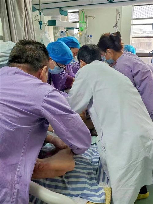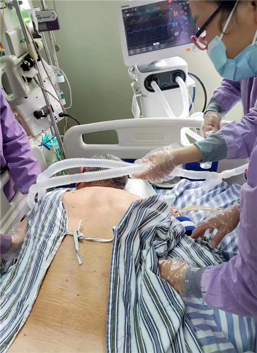 近日,石化醫(yī)院重癥醫(yī)學科收治一例病毒性肺炎患者,其肺部影像學檢查顯示大片滲出,俗稱“白肺”。因氧和不能維持,憑借治療ARDS的豐富經(jīng)驗,重癥醫(yī)學科團隊決定每日對患者行“俯臥位通氣”。于是,每日清晨科室全體齊上陣,有人保護管道、有人手動翻身、有人放置軟枕確?;颊呤孢m……全科上下齊心協(xié)力、不辭辛苦,只為幫助患者自由呼吸!