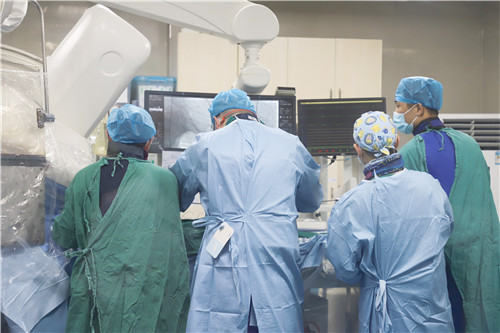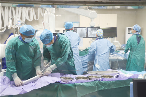 為保證創(chuàng)傷小、恢復(fù)快、并發(fā)癥可控,心血管內(nèi)科聯(lián)合麻醉科、醫(yī)學(xué)影像科、超聲醫(yī)學(xué)科等多學(xué)科會(huì)診,反復(fù)溝通討論,最終決定施行TAVR手術(shù),并征得王女士及家人的同意。該項(xiàng)微創(chuàng)介入技術(shù)對(duì)術(shù)者的技能操作水平和醫(yī)院的綜合救治能力要求極高,從大腿股動(dòng)脈置入導(dǎo)管,再通過(guò)導(dǎo)管將人工生物心臟瓣膜輸送至已經(jīng)病變狹窄的瓣膜位置,取代其瓣膜功能。