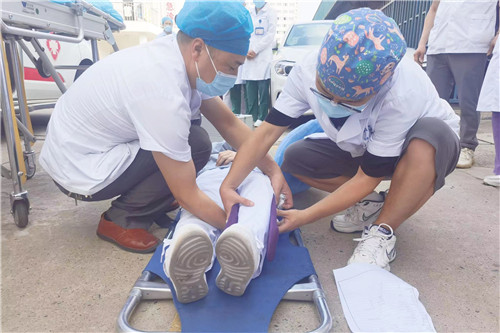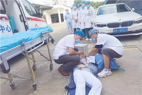 隨著120警報聲響起,演練正式拉開帷幕。此次演練采用團(tuán)隊配合搶救模式,從120呼叫求助、院前傷員處置、院內(nèi)危重患者搶救到患者安全轉(zhuǎn)運(yùn),多個情境進(jìn)行應(yīng)急演練,醫(yī)護(hù)共同協(xié)作完成,整個流程組織有序、分工明確、反應(yīng)迅速,基本達(dá)到演練效果。結(jié)束后,醫(yī)護(hù)團(tuán)隊還就演練中存在的問題進(jìn)行分析討論,點(diǎn)對點(diǎn)提出合理化建議。