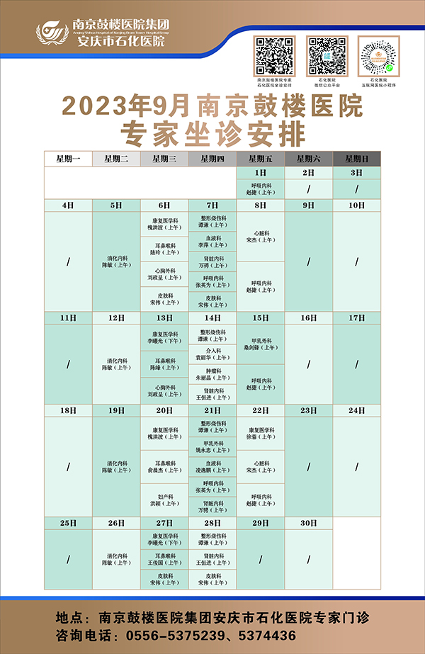 地點就在南京鼓樓醫(yī)院集團下屬的安慶市石化醫(yī)院專家門診!