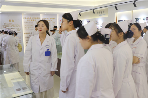 開學(xué)典禮結(jié)束后,在醫(yī)院領(lǐng)導(dǎo)的陪同下,醫(yī)專領(lǐng)導(dǎo)和雙主體班學(xué)生前往醫(yī)院院史館參觀。
