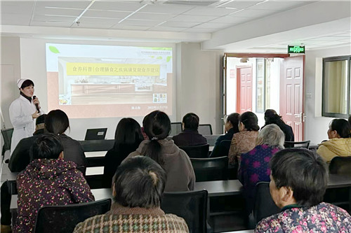 康復(fù)醫(yī)學(xué)科護士長、高級健康管理師陳志梅以《合理膳食之疾病康復(fù)期食養(yǎng)建議》為題開展講座,用通俗易懂的語言、生動形象的圖片,向社區(qū)群眾強調(diào)了食養(yǎng)的重要性,詳細(xì)介紹了平衡膳食的分類、骨折康復(fù)期的營養(yǎng)補充以及營養(yǎng)不良的自我監(jiān)測等,大家紛紛表示受益匪淺。